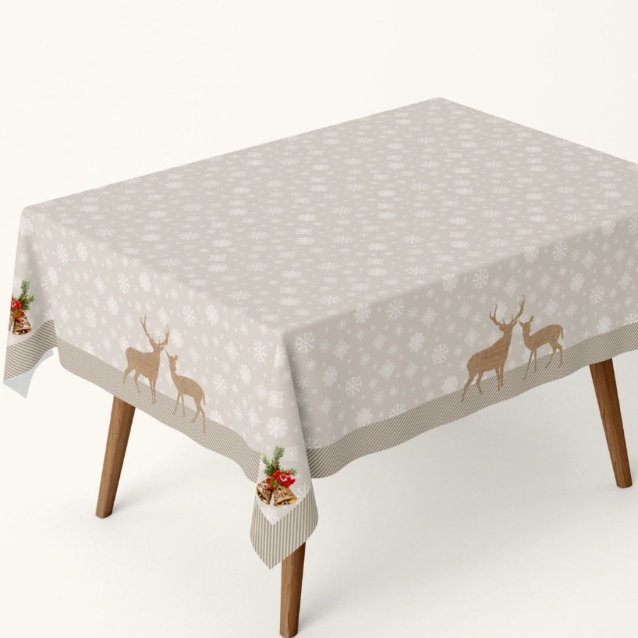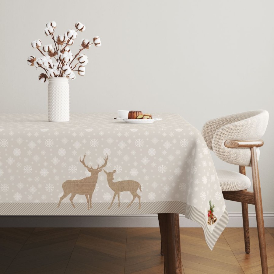 Transformă-ți mesele de sărbători într-o adevărată poveste cu fața de masă Crăciun Bilbo, realizată din bumbac 100% de înaltă calitate. Cu imprimeu rafinat de reni și fulgi de zăpadă în tonuri calde de bej și alb, adaugă eleganță și căldură fiecărei reuniuni festive.