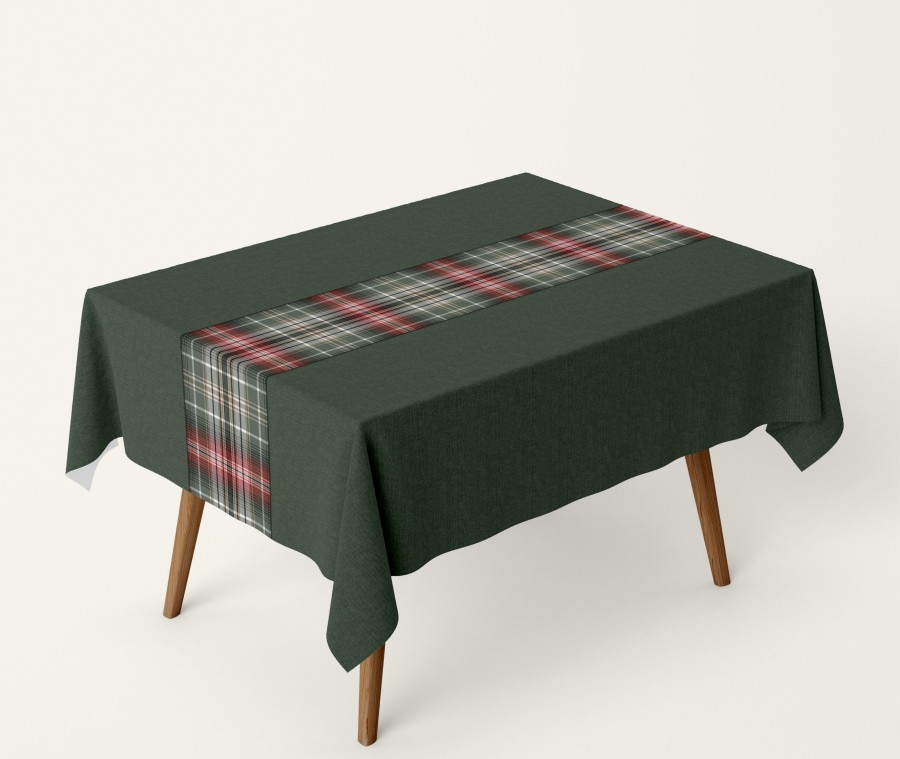 Îmbracă masa de sărbători în eleganță și rafinament cu fața de masă Checo, realizată din bumbac 100% de cea mai bună calitate. Cu un design inspirat din natură și tradiție, această față de masă combină tonurile profunde de verde brad cu accentele de carouri roșii și albe, aducând în casa ta farmecul autentic al Crăciunului.