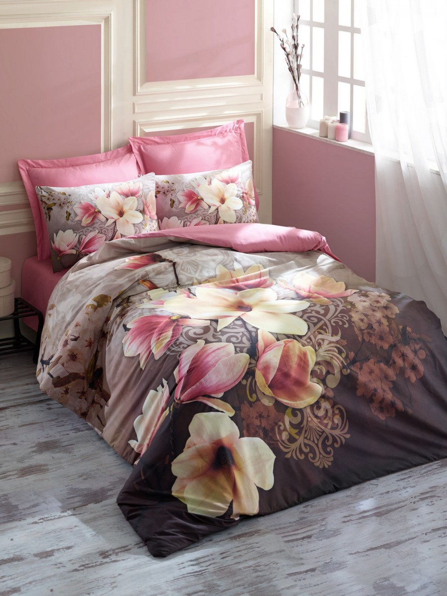Lenjerie 3D Life din bumbac 100 ranforce, Cotton Box, Magnolia - Brown