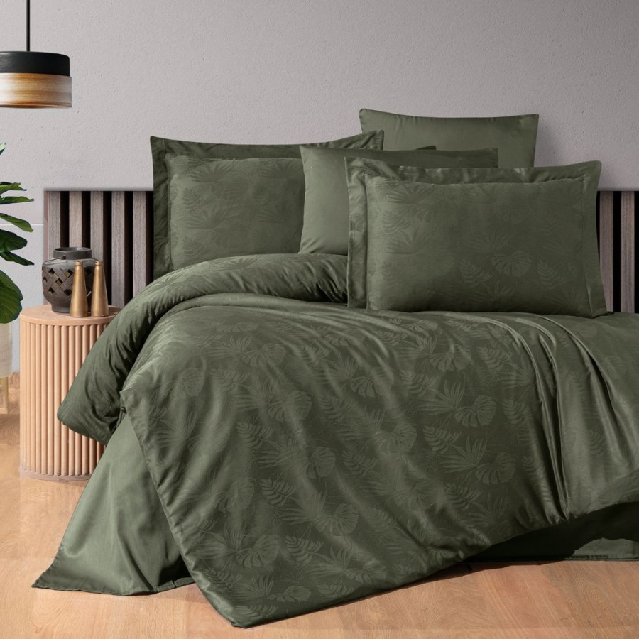 Lenjerie de lux pat dublu jacquard satin 6 piese, First Choice, Nichol Verde inchis
