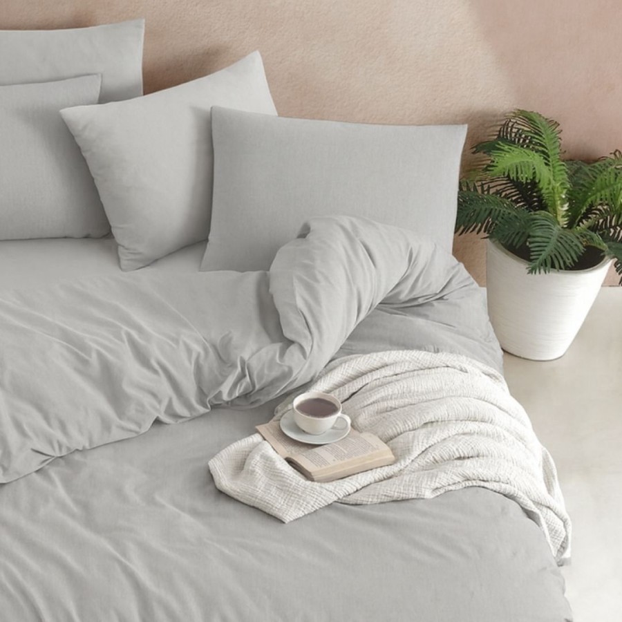 Lenjeria de pat Yarn Dyed Gri aduce în dormitor un stil modern și rafinat, datorită efectului melanj obținut prin vopsirea în fir. Nuanțele gri deschis și gri mediu se împletesc armonios în țesătură, oferind profunzime vizuală și un aspect elegant, potrivit atât pentru interioare minimaliste, cât și pentru decoruri nordice sau contemporane.