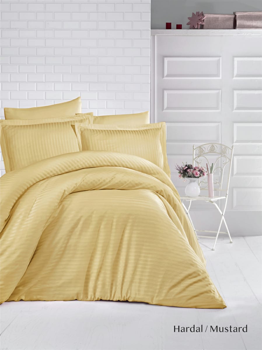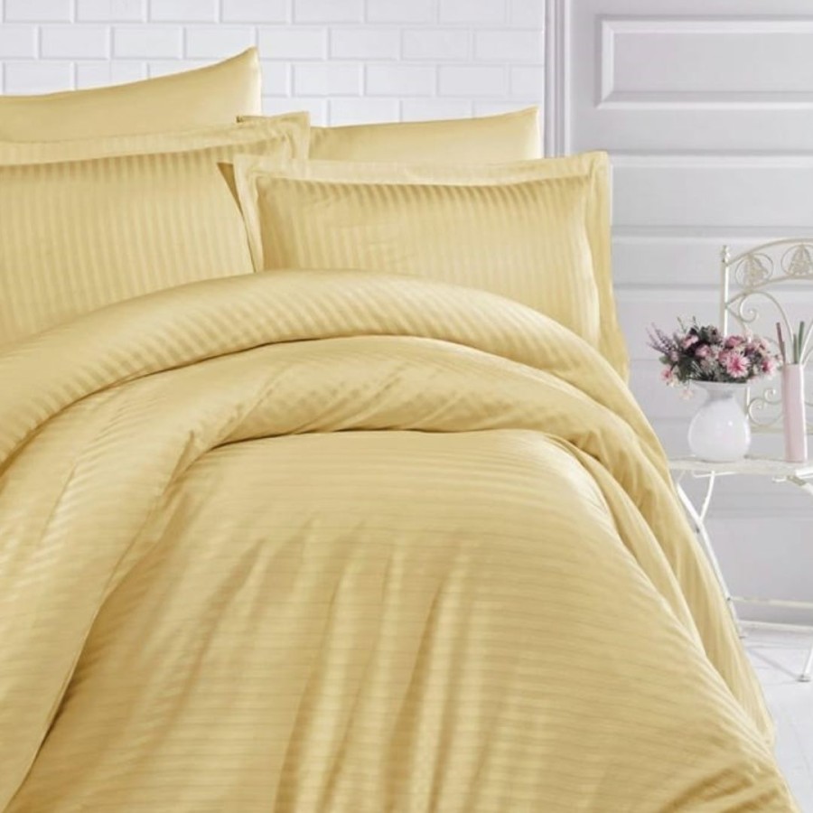 Lenjerie de pat damasc gros 1 persoana, culoarea Mustar
