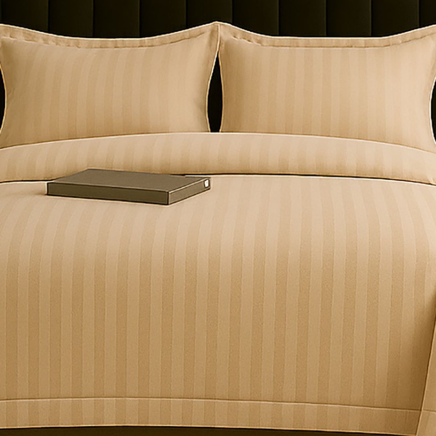 Adaugă o notă caldă și elegantă dormitorului tău cu această lenjerie de pat dublu din damasc policoton în nuanță sofisticată de cappuccino. Dungile fine conferă un aspect luxos și rafinat, completând perfect decorurile moderne sau clasice.