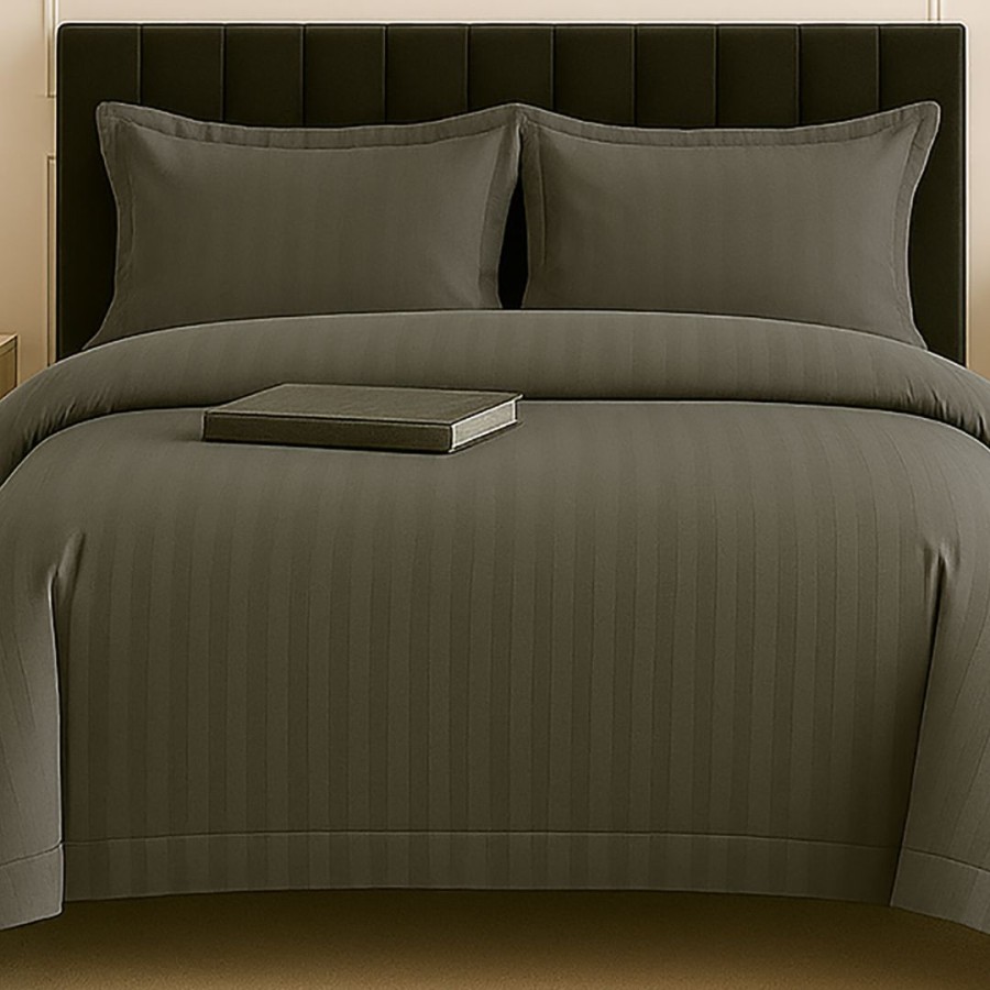 Redefinește eleganța dormitorului tău cu această lenjerie de pat dublu din damasc policoton gri antracit. Nuanța intensă și modernă aduce un aer rafinat și contemporan, perfect pentru spații minimaliste sau amenajări sofisticate.