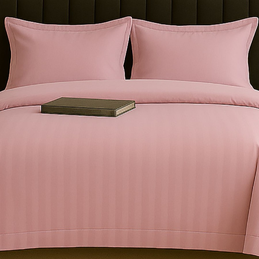 O alegere elegantă și plină de rafinament, această lenjerie de pat dublu din damasc policoton în nuanță roz movaliu adaugă o notă sofisticată dormitorului tău. Culoarea expresivă creează un ambient cald și primitor, potrivit atât pentru interioare moderne, cât și pentru cele clasice.