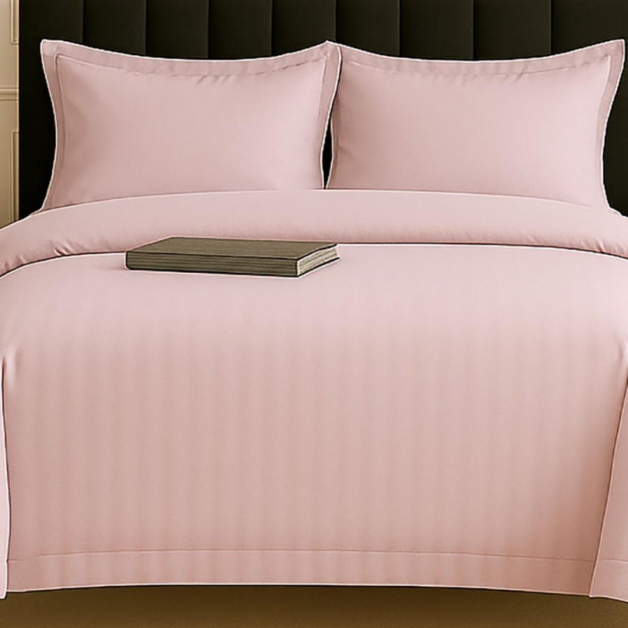 Creează o atmosferă delicată și relaxantă în dormitor cu această lenjerie de pat dublu din damasc policoton roz pudră. Nuanța blândă de roz aduce o notă romantică și rafinată, perfectă pentru interioare luminoase și moderne.