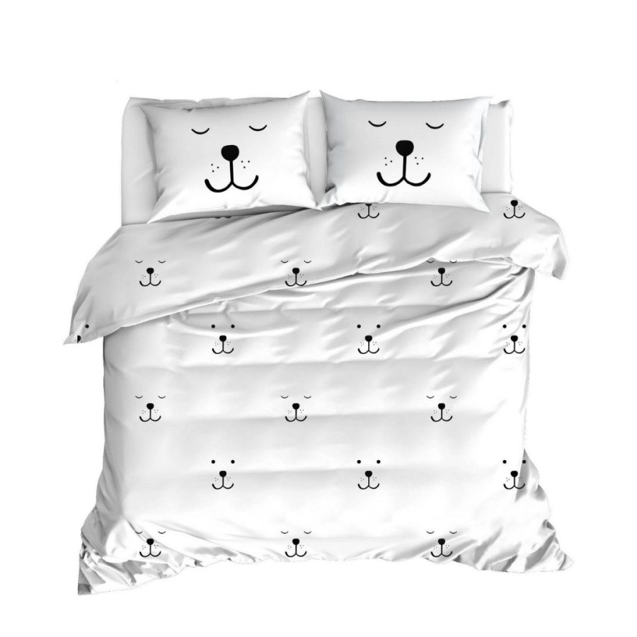 Lenjeria Eles White de la Enlora Home aduce un strop de gingășie în dormitorul tău, datorită imprimeului minimalist cu fețe jucăușe de ursuleți. Designul alb cu accente negre oferă un aer modern, curat și prietenos, potrivit atât pentru dormitoare de adulți, cât și pentru camerele tinerilor.