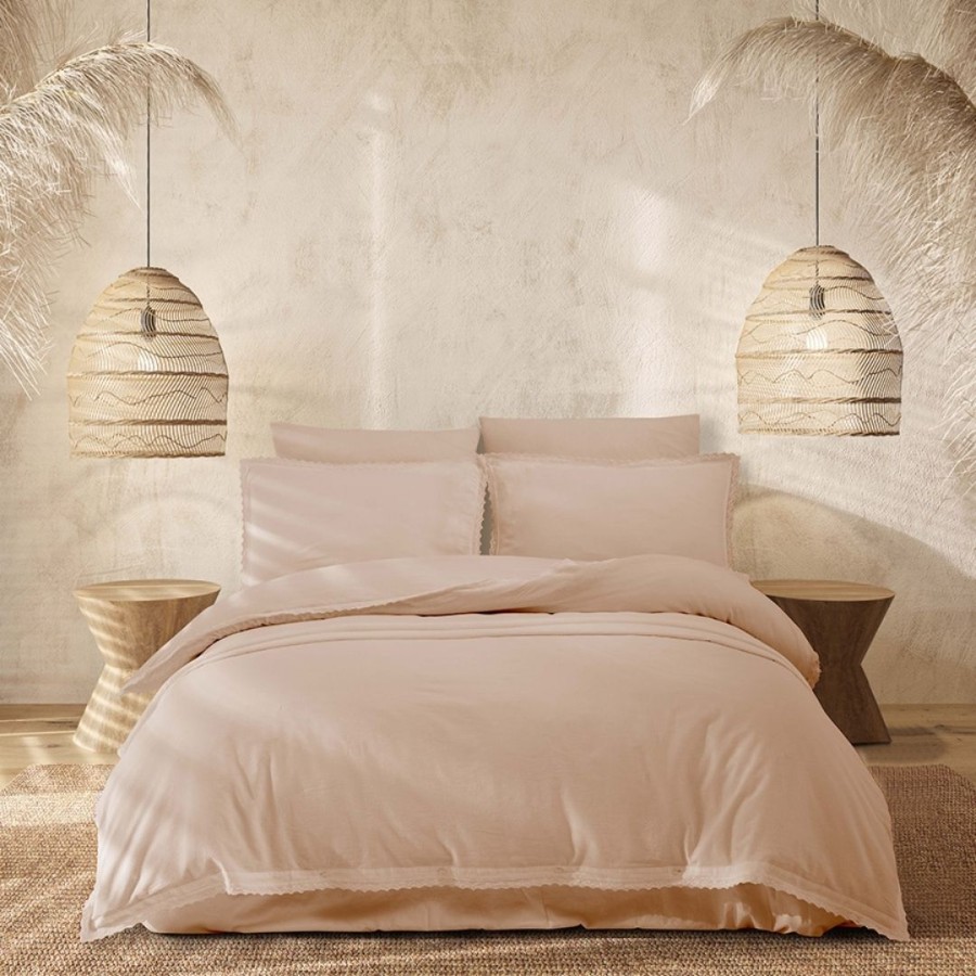 Lenjeria de pat Tylia Ballet aduce în dormitor o atmosferă delicată și rafinată, în nuanțe blânde de roz pudrat. Accentele fine de dantelă croșetată și textura mată a bumbacului prespălat transformă fiecare noapte într-o experiență de confort natural și eleganță.