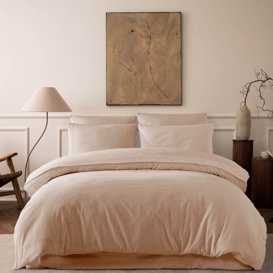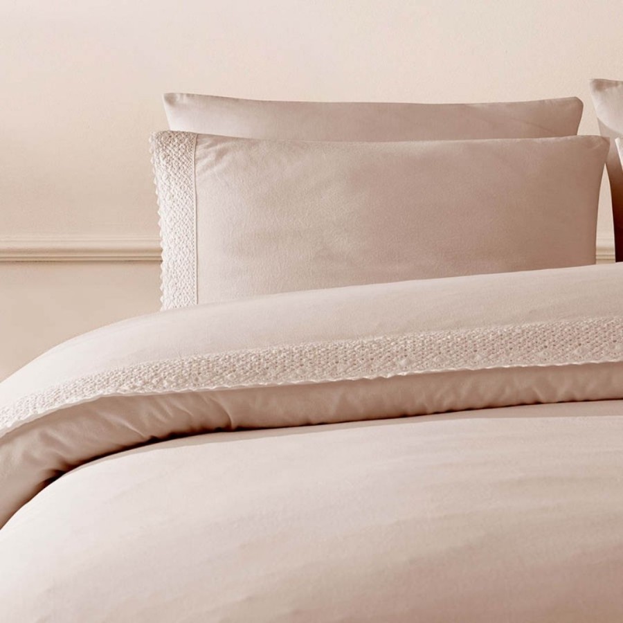 Lenjeria de pat Lavinya Ballet (roz pudra) este expresia rafinamentului modern și a confortului natural. Tonul cald de roz pudrat aduce o notă subtilă de feminitate, iar dantela croșetată aplicată fin la margini completează designul cu eleganță și simplitate.