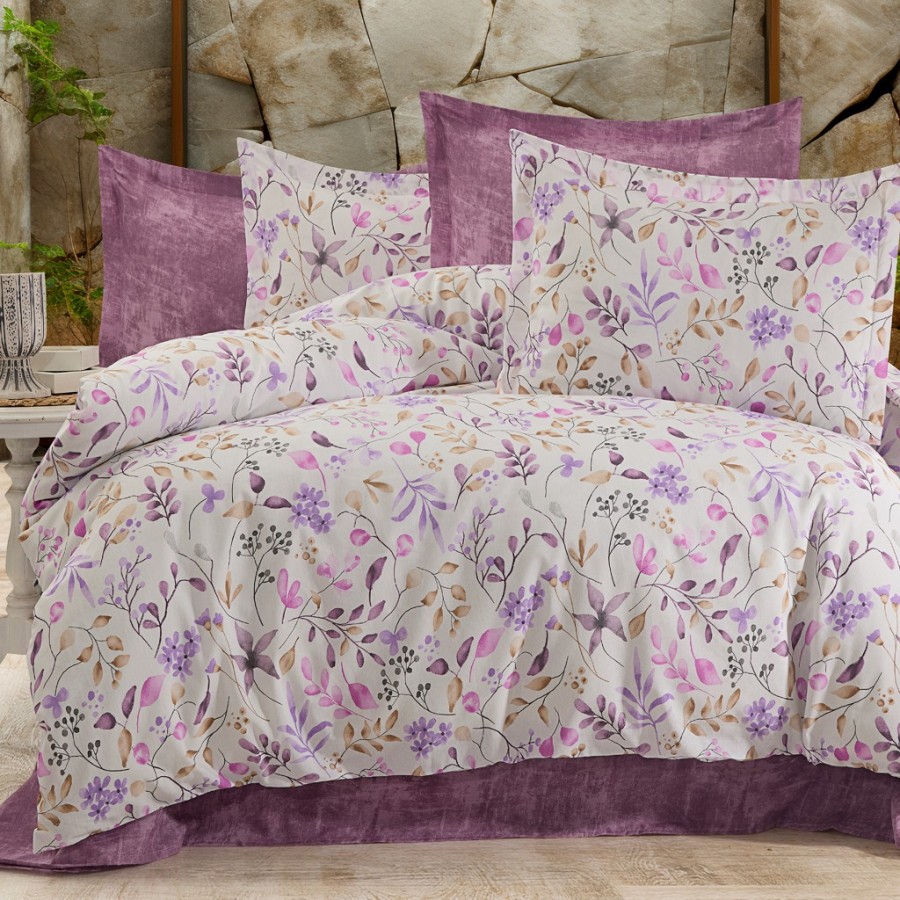 Lenjerie de pat dublu ranforce 4 piese flori lila