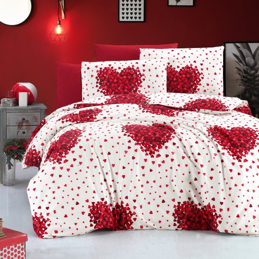 Lenjerie de pat dublu ranforce 4 piese inimi rosii