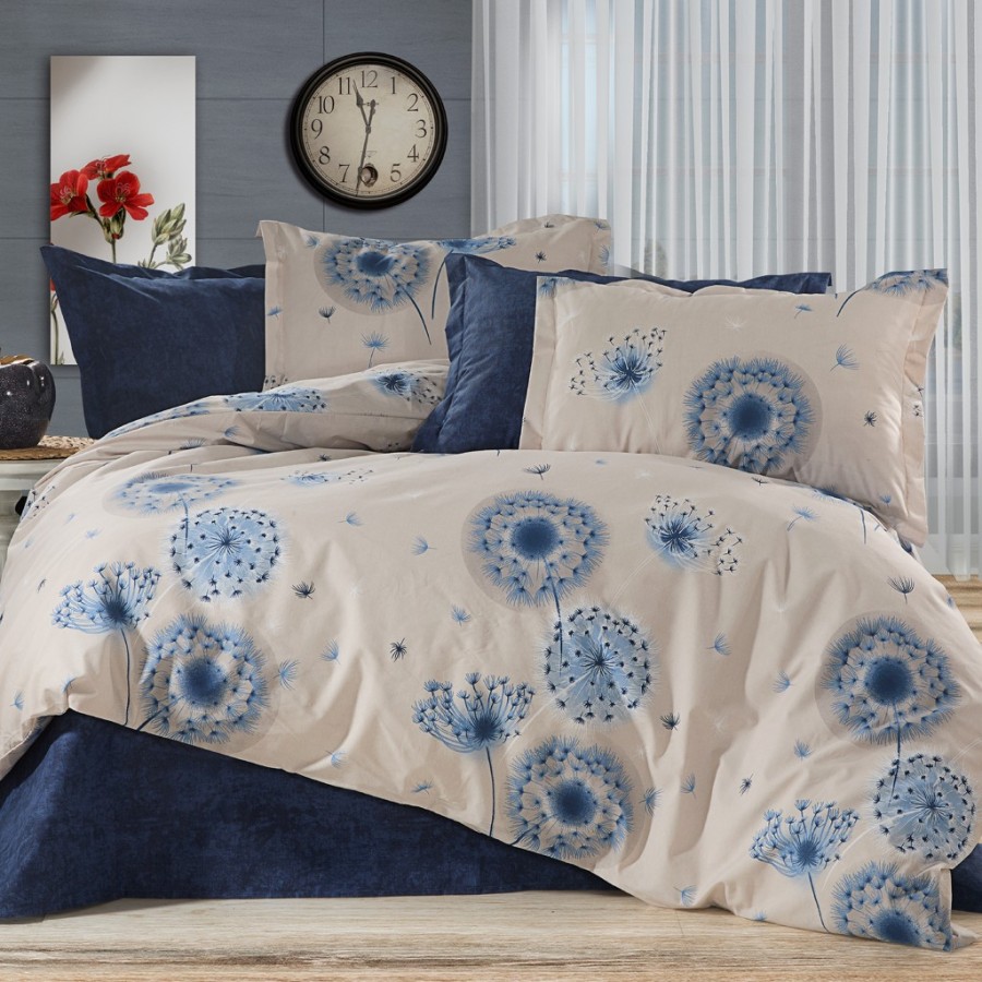 Lenjerie de pat dublu ranforce 4 piese papadii bleu