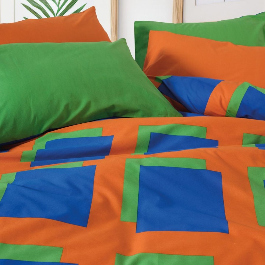 Lenjeria Cozy Home Venus Blue este creată special pentru camere moderne, vibrante și pline de energie. Combinația îndrăzneață de albastru intens, portocaliu și verde transformă orice dormitor într-un spațiu vesel și dinamic, perfect pentru tineri sau pentru încăperi unde culorile vii sunt parte din decor.