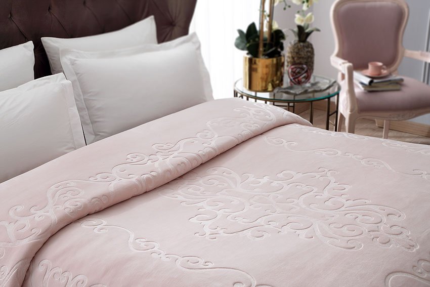 Patura de lux embosata TAC 220x240cm Lauren Roz Pudra