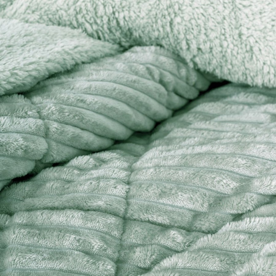 Față: Wellsoft wave - microfibră pufoasă și catifelată, Verso: Sherpa - material textil ce imită textura lânii naturale, ideal pentru sezonul rece datorită capacității excelente de a reține căldura.