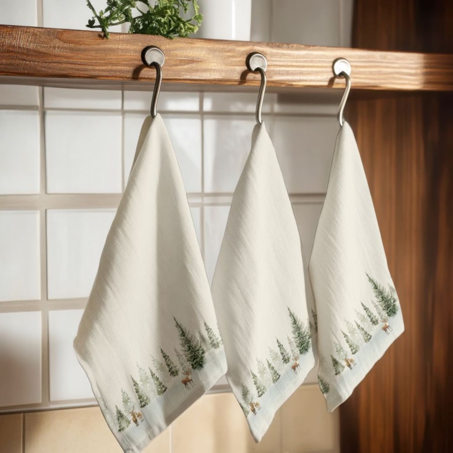 Adaugă o notă rafinată de sărbătoare în bucătăria ta cu prosopul de bucătărie Crăciun Pine, confecționat din bumbac 100% de înaltă calitate. Imprimeul delicat cu brazi ninși și reni grațioși aduce un aer natural și elegant, perfect pentru decorul de iarnă și mesele festive.