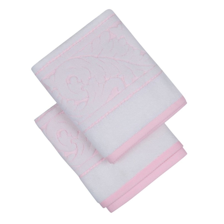 Setul de 2 prosoape Sultan Alb/Roz din bumbac 100% este ideal dacă îți dorești prosoape delicate, cu un aspect luminos și feminin. Fondul alb este pus în valoare de detaliile roz pastel, iar bordura cu țesătură jacquard în aceleași tonuri oferă un design elegant, perfect pentru băi moderne, romantice sau pentru baia copiilor.