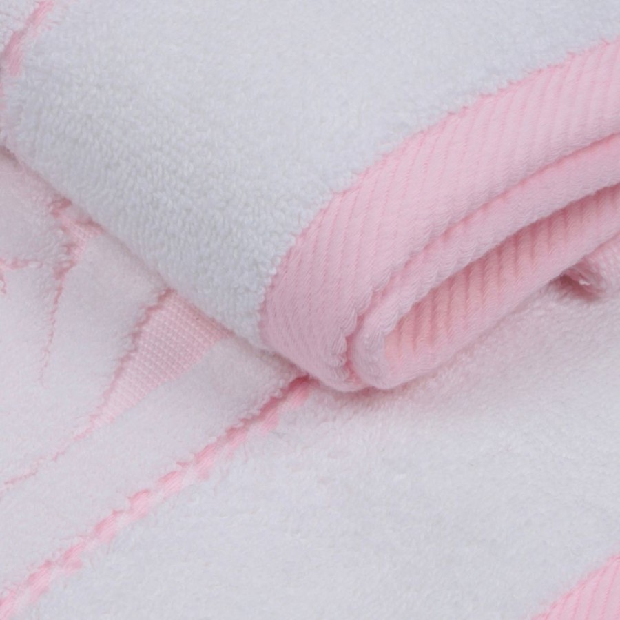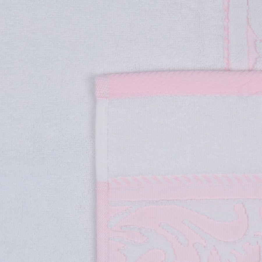Set 2 prosoape 50x90cm bumbac 100% cu bordura jacquard, Hobby Home, Sultan Alb/Roz