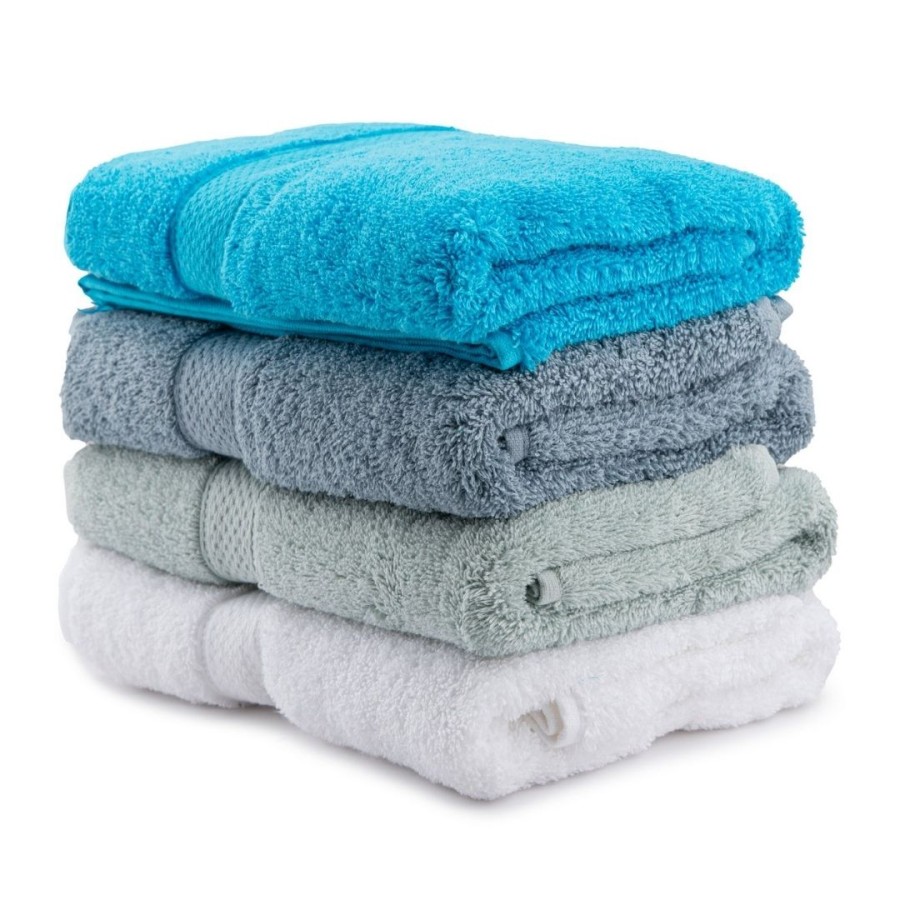 Setul de 4 prosoape Multicolor Style 8 din bumbac 100% aduce în baia ta o combinație fresh de culori: turcoaz, gri, verde deschis și alb. Fiecare prosop are bordură decorativă și agățătoare practică, astfel încât le poți organiza ușor pe suportul de prosoape sau în baie.