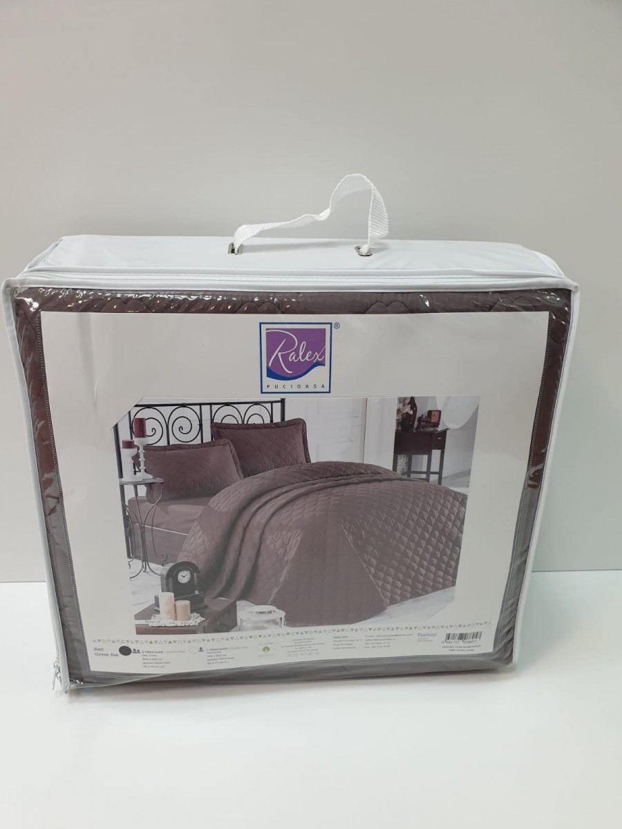 Set cuvertura matlasata + 2 fete perna bumbac 100% , Rabel Maro