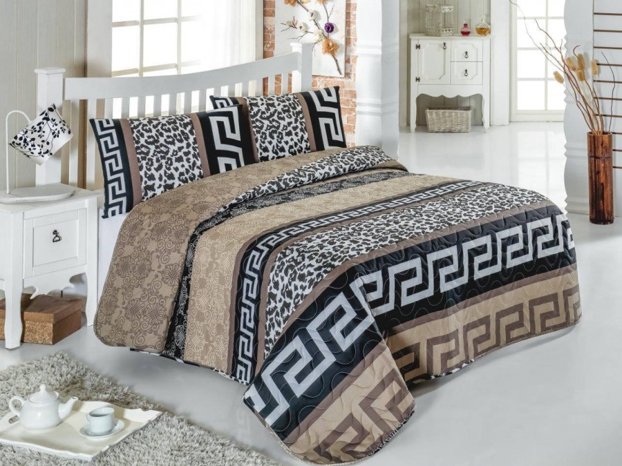 Set cuvertura matlasata 200x220cm+ 2 fete perna 50x70cm Mixlia - Brown
