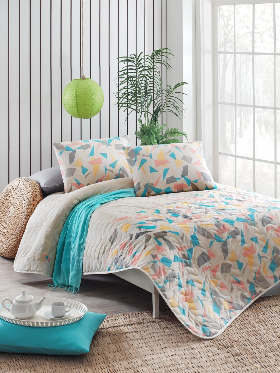Set cuvertura matlasata 200x220cm+ 2 fete perna 50x70cm Origami - Salmon