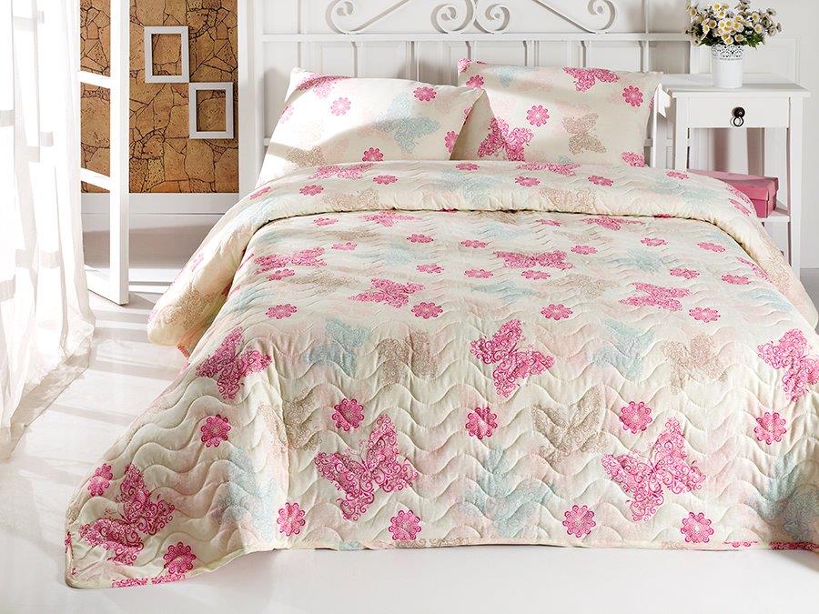Set cuvertura matlasata 200x220cm+ 2 fete perna 50x70cm Papillon - Light Cream